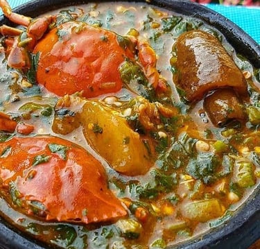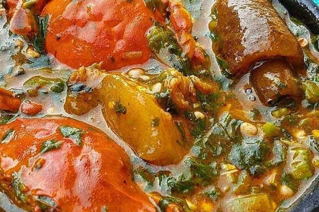 Preparing the meat and fish: If you're using meat, cut it into small pieces. Place the meat in a pot, add water and a bit of salt, then bring to a boil. Let it cook until the meat is tender. If you're using smoked fish, clean it and set it aside.