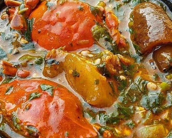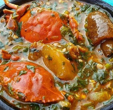 Creamy sauce, enjoyable to eat with rice, yam fufu, or banana fufu with cassava.
